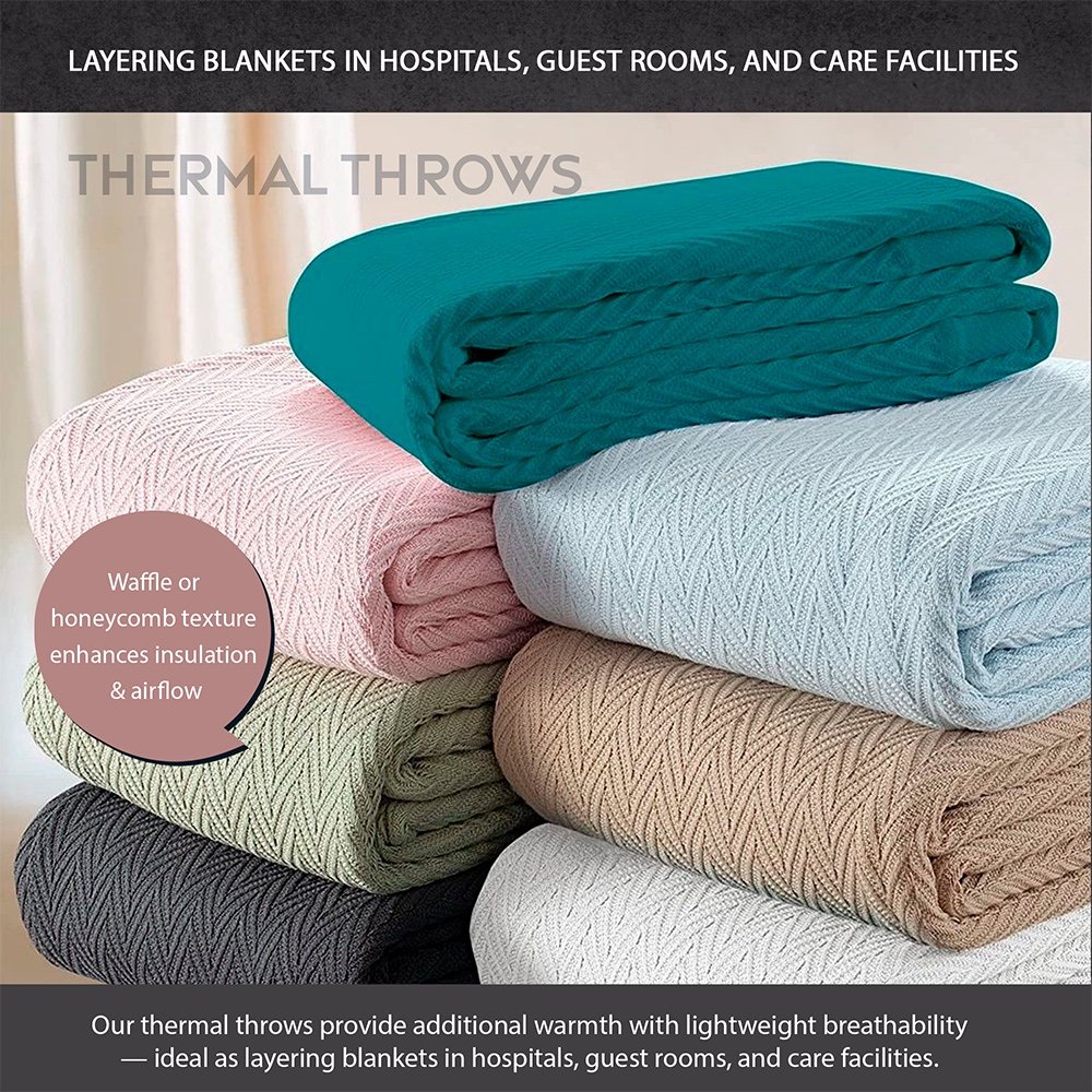 Our thermal throws provide additional warmth with lightweight breathability — ideal as layering blankets in hospitals, guest rooms, and care facilities.